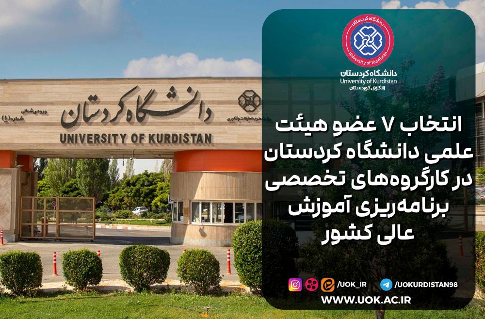 Five faculty members from the University of Kurdistan have been elected as principal members, and two as alternate members, of the National Higher Education Planning Specialized Working Groups.