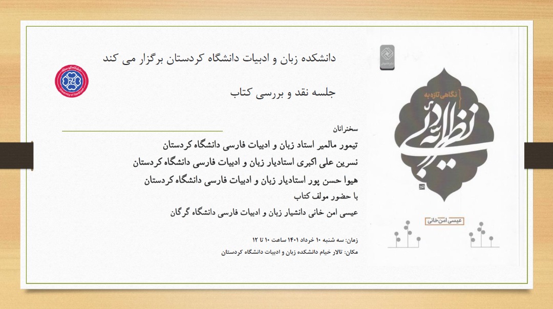 مکان: تالار خیام دانشکده زبان و ادبیات دانشگاه کردستان
