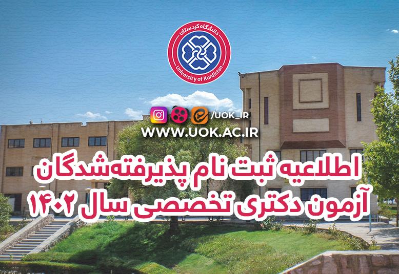 اطلاعیه ثبت نام پذیرفته‌شدگان آزمون دکتری تخصصی سال 1402 در دانشگاه کردستان